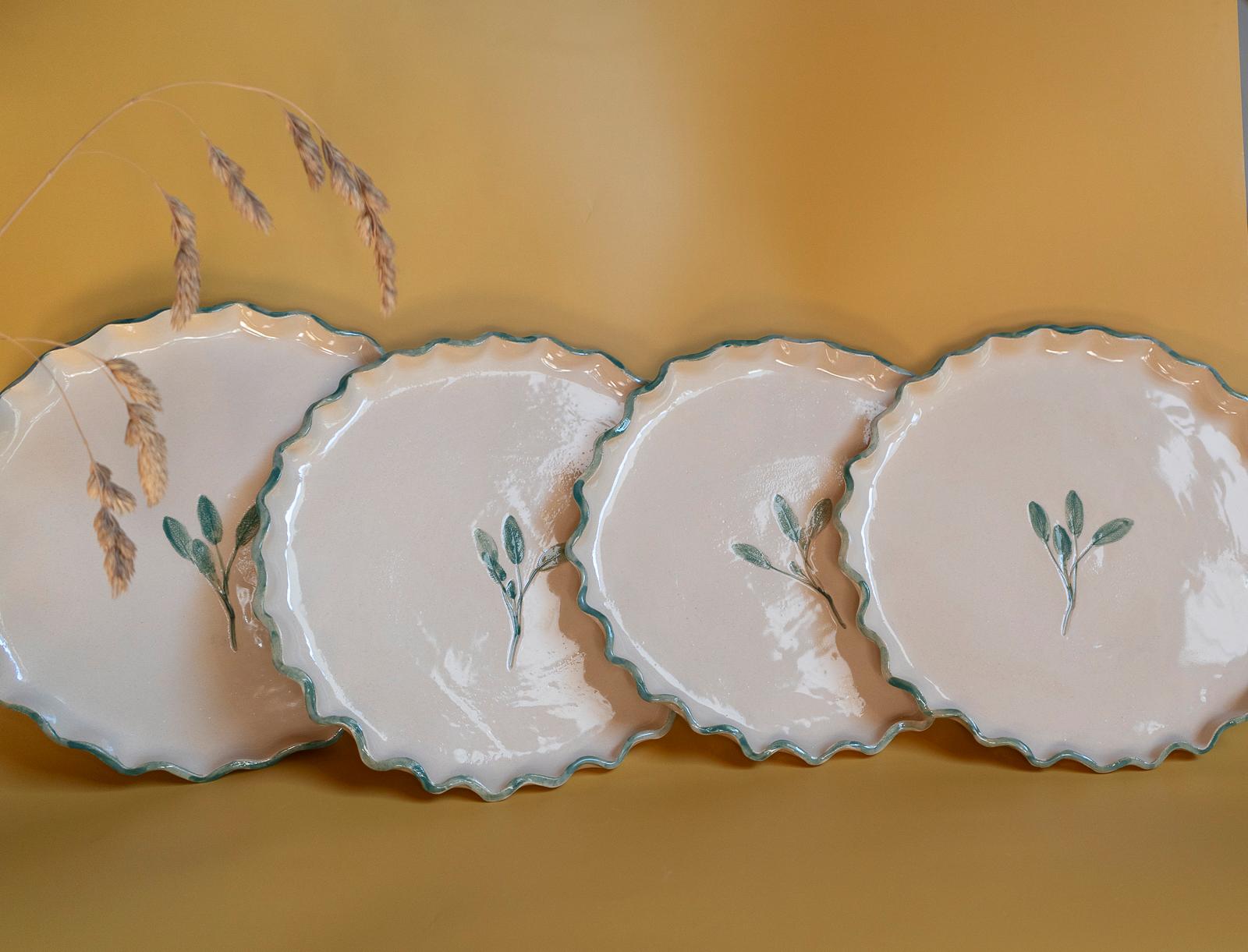 - Freies Gestalten von zwei grosse Teller, vier kleine Dessertteller, eine Butterdose, eine Vase, eine grosse Salatschüssel und vieles mehr!